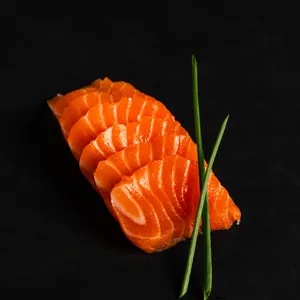 Camarón - salmón - cebollín - envuelto en salmón cocido y pasta picante