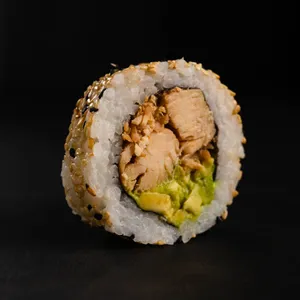 Atún - cebollín - pepino - champiñones apanados - palta - base de arroz